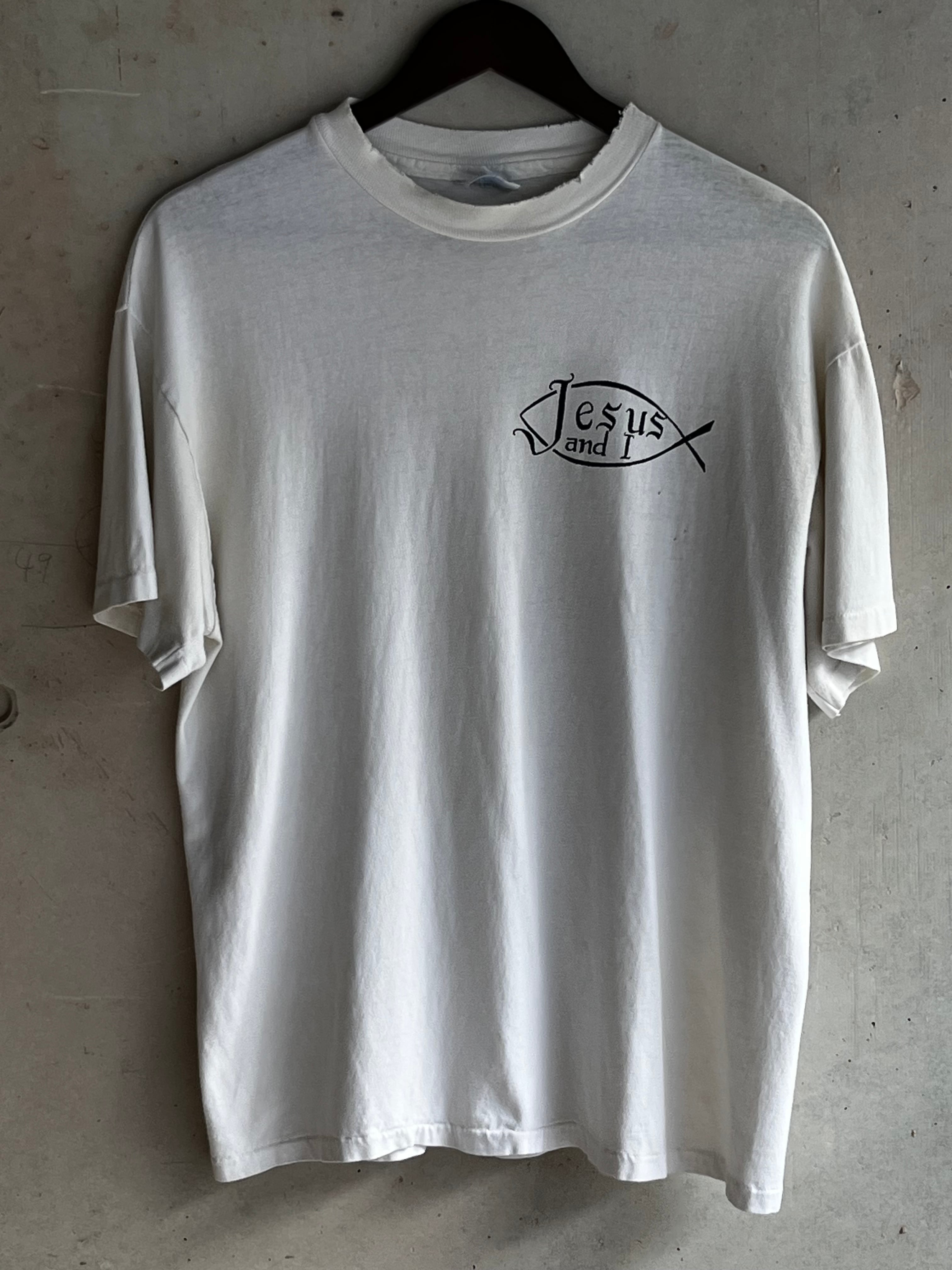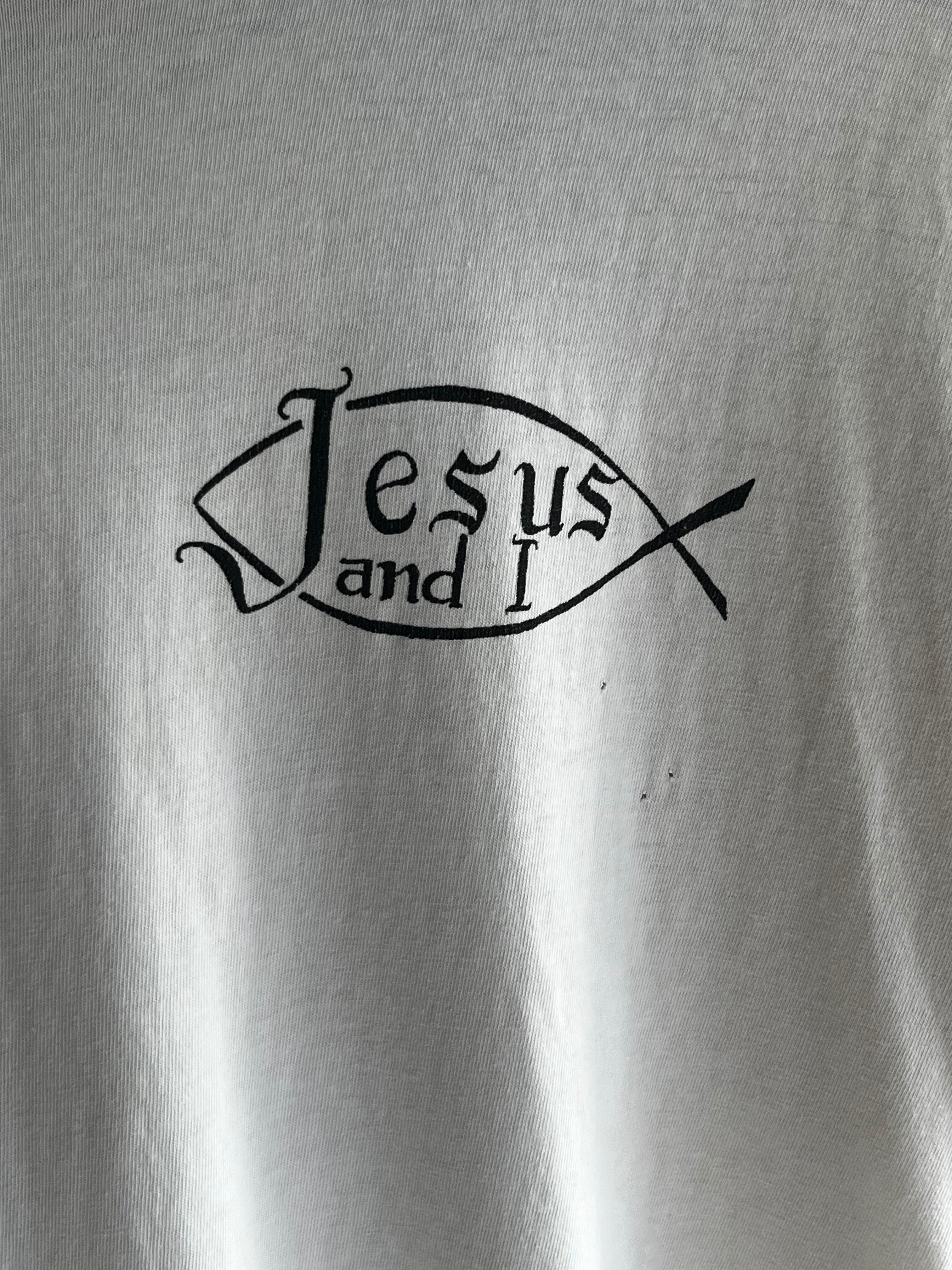 フロントに“Jesus and I”と魚(イクトゥス)モチーフのロゴ、背面にはイエス・キリストが大きくプリントされたかなり危うさのあるデザイン。