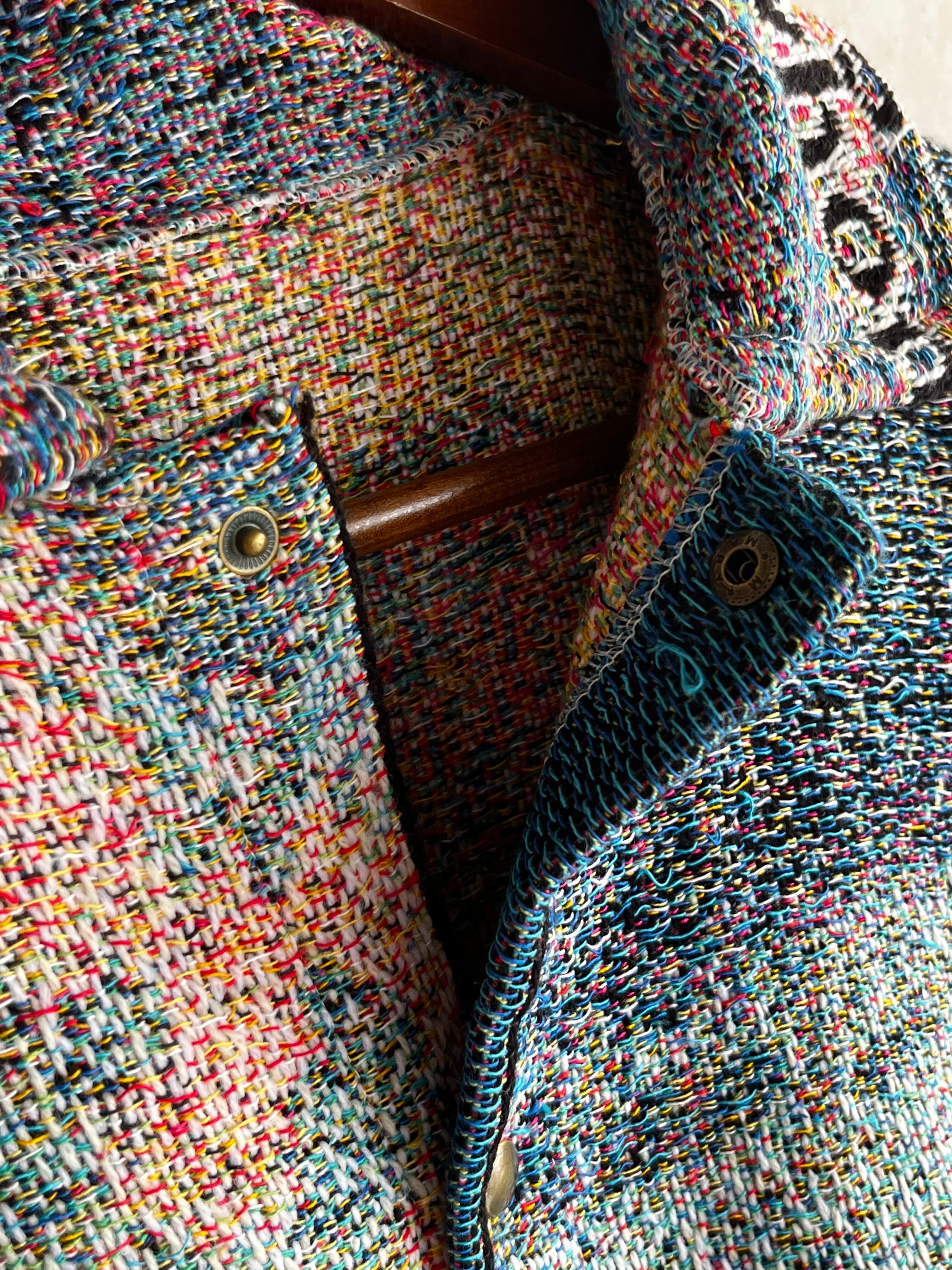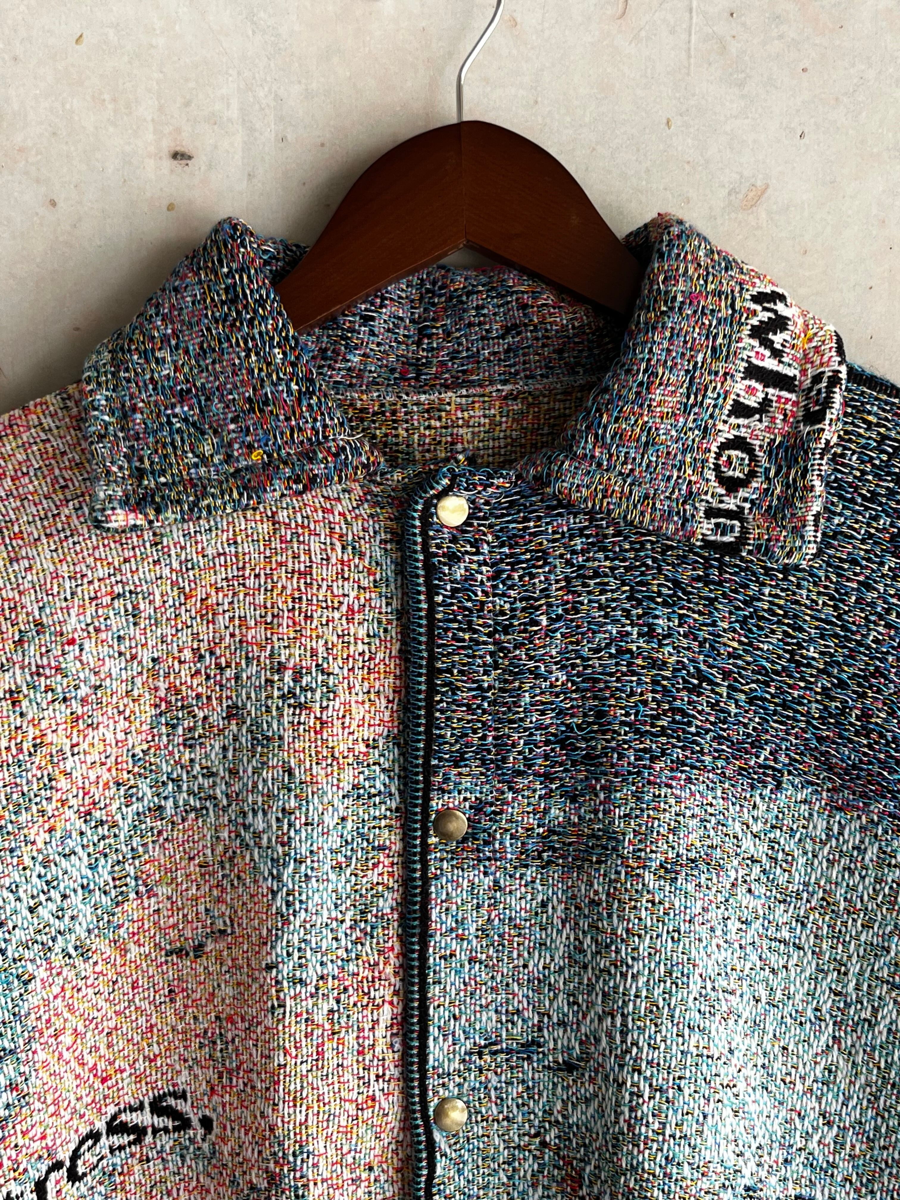肉厚なジャガード生地で立体感があり、見た目の迫力だけでなく着用時の存在感も抜群。フロントはスナップボタン仕様。唯一無二の一着です。