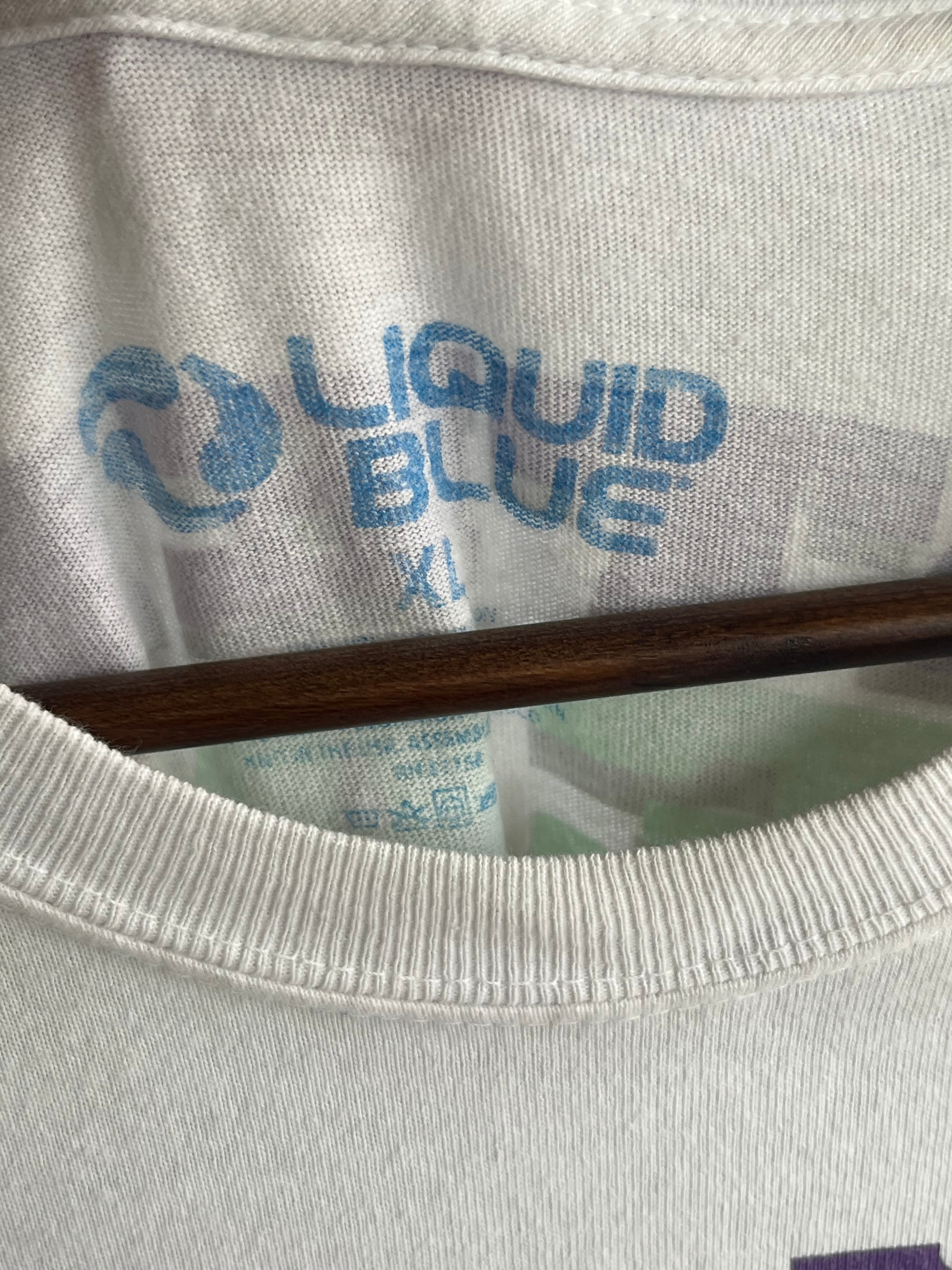 両面プリントで、下部はタイダイ染めの切り替え仕様。Liquid Blue製ならではのクオリティとアート性が際立つ一着です。